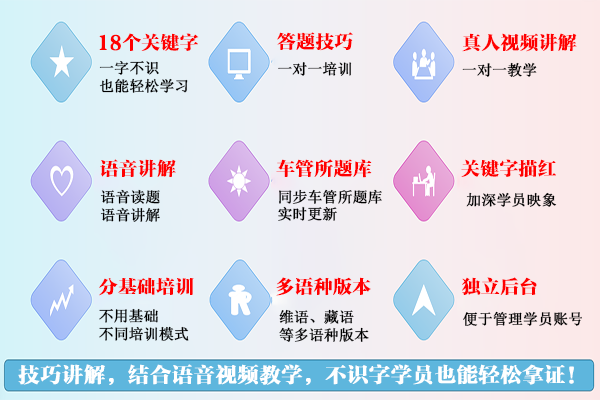 車龍頭交規是一款專業的文盲駕考理論速成軟件,采用技巧培訓學員,只要學員記住18個核心關鍵字。不管學員識不識字,記性好不好,都能輕松培訓學員通過科一科四理論考試。技巧簡單,軟件題庫全,可快速培訓學員。 軟件試用 →